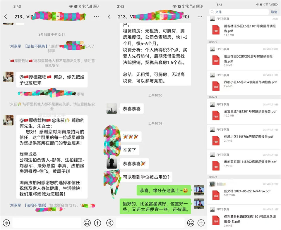 圖2、還是那句話,拍房真的看緣分,何總是我公司(湖南法拍網法拍房地產經紀有限公司)第213位VIP客戶,6月16號簽約的,今天11月16日,剛好服務了5個月,看了不少房子,參拍過的都有八九套了,而且有幾次都好給力,拍金富星城的時候(140平的四房出到了77萬,是老二),感覺比二手房還貴了還想搞(我們給勸退了,寧愿多給客戶拍幾套,也還是要撿漏為主),中間還有房子預算都出到100萬了也沒搞贏,真的就是沒緣分。今天這套臥龍灣,都是昨天臨時起意要拍的,結果底價就成交了,145平才68萬,那比金富星城那套真的好多了,不僅小區(qū)環(huán)境更好,位置配套也更好,而且價格還便宜了10萬。