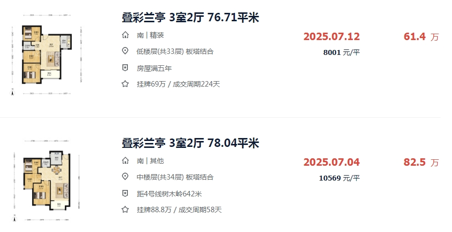(圖3)貝殼二手房最近的一套同戶型成交價(jià)82.5萬(對(duì)比這個(gè)撿漏25萬),就連一套低樓層的也賣了61.5萬(對(duì)比這個(gè)也撿漏幾萬),咱拍的這個(gè)樓層非常好,不是頂樓,所以撿漏十幾萬是肯定有的。