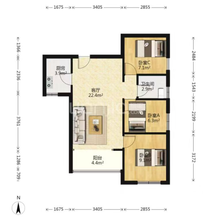 房子77平,沒公攤,精裝三房(圖2戶型),二拍57.5萬底價(jià)成交,精裝單價(jià)才7490元一平。