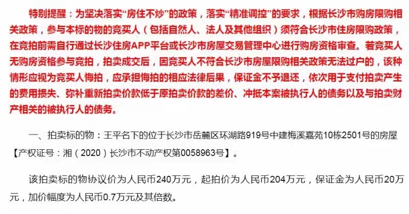 能撿漏是因?yàn)楣鎸懥艘彿抠Y格,別人都不敢拍。我們判斷是不要資格的,所以讓L總拍。L總也沒有長沙購房資格,信了我們的拍了,拍到了,結(jié)果大家也看到了,過戶收房了,撿了這個(gè)漏。