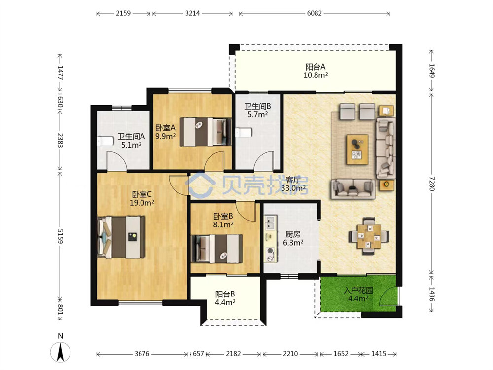 咱拍的這套房子130.75平,是大三房兩廳兩衛(wèi),雖然是2樓,但因為是南北通透的邊戶,白天的采光還是不錯的。