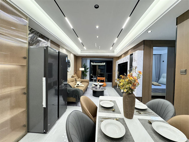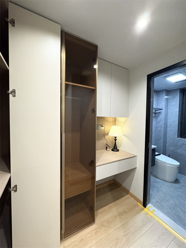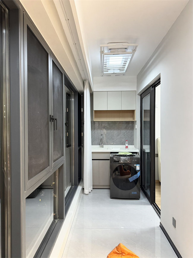全屋私人高端定制,品質看得見:兔寶寶ENF級衣柜(藍光筆可測真?zhèn)危?、客廳美的中央空調,廚房美的三件套、美的雙開門大冰箱、小天鵝滾筒洗衣機、樂視70寸大電視、真皮沙發(fā)、4人位輕奢餐桌、滿墻電視柜背景、4米巖板超長地臺、1米5廣東大磚,浴室智能鏡、衛(wèi)生間干濕分離、陽臺專用洗曬區(qū),電動晾衣架,全屋窗簾,智能馬桶等等等等。