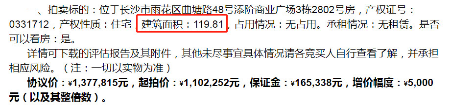 在湖南法拍網(wǎng)法拍房地產(chǎn)經(jīng)紀(jì)有限公司的輔助競(jìng)拍下,龔叔拍了套長沙五江天街的精裝修法拍房,不僅沒坑,還撿漏了十幾萬,恭喜恭喜。