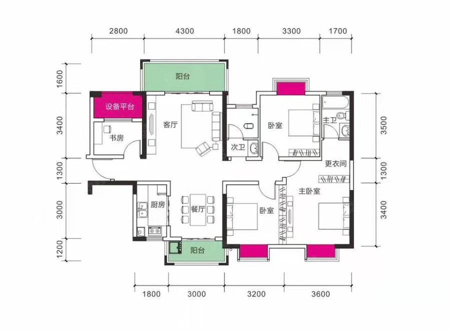 房屋戶型四室兩廳二衛(wèi)